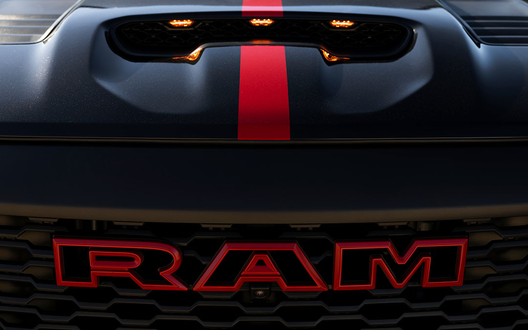 - Ram celebra el regreso con la edición especial Bloodshot Night, una versión que cuenta con una exclusiva temática cromática Blacktop, una llamativa franja central Flame Red en el cofre con detalles a juego, gráficos exclusivos en la parrilla, molduras interiores de fibra de carbono con acentos rojos, placa de la consola central encapsulada en vidrio y emblemas TRX con bordes rojos