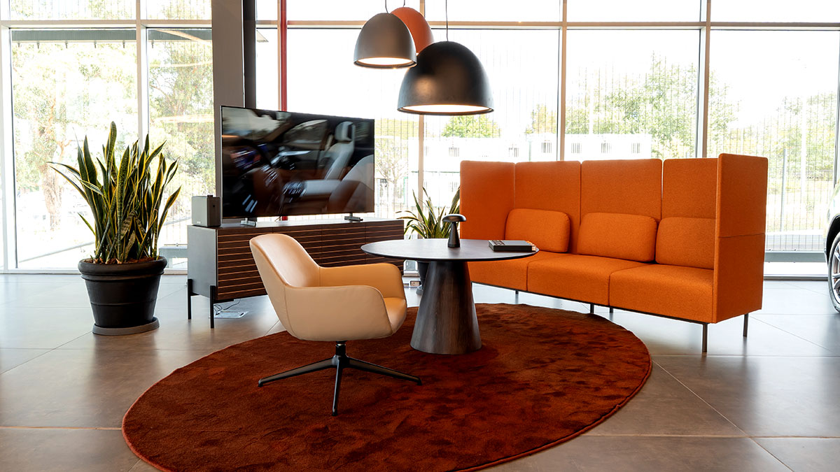 La distribución presenta espacios abiertos, con elementos minimalistas que facilitan un flujo natural a través de su amplia área de exhibición. Allí los clientes pueden apreciar una muestra muy representativa de la línea de productos. Una exhibición espaciosa y rodeada de todos los elementos de confort. Las tres marcas cuentan con espacios claramente delimitados: BMW y MINI en la planta principal mientras que BMW Motorrad se ubica en el piso superior. En cada uno de ellos, el equipo de atención de Magna brinda asistencia en forma personalizada y también digitalizada. Aportando toda la información para una elección segura del vehículo que más se adapte a los deseos y necesidades de los clientes. El espacio de entrega de vehículos fue altamente valorado durante la elaboración del proyecto, siendo este un espacio reservado donde los clientes comienzan a vivir la aventura de su nuevo vehículo junto con su familia.